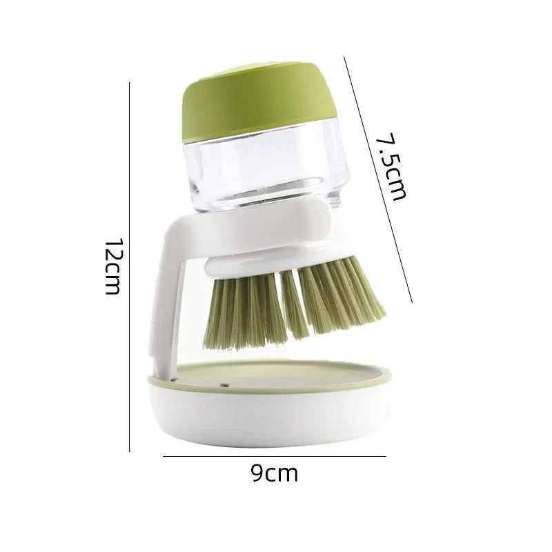 "2-in-1 Soap Dispensing Dish Brush with Storage Stand – Palm Scrubber with Drainage Base for Easy Bowl & Cookware Cleaning"
