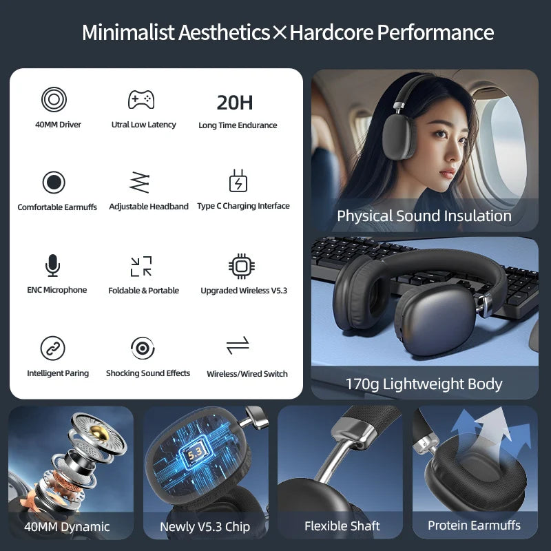Soyto T10 Wireless Foldable Headphones BT5.3 Stereo Headset with Mic Casque P9 Pro Max ODM Audifono Auriculares Fone De Ouvido